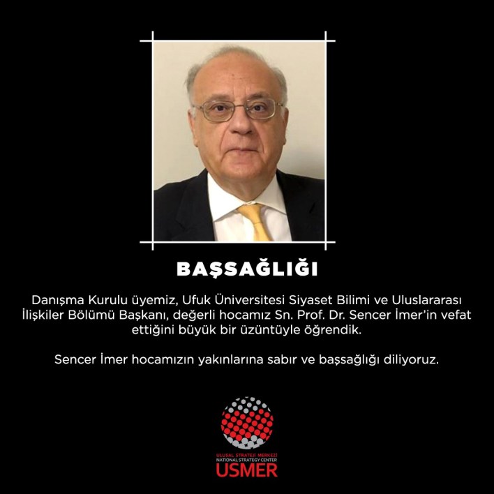 Danışma Kurulu üyemiz, Ufuk Üniversitesi Siyaset Bilimi ve Uluslararası İlişkiler Bölümü Başkanı, değerli hocamız Sn. Prof. Dr. Celalettin Sencer İMER’in vefatını büyük bir üzüntüyle öğrendik.